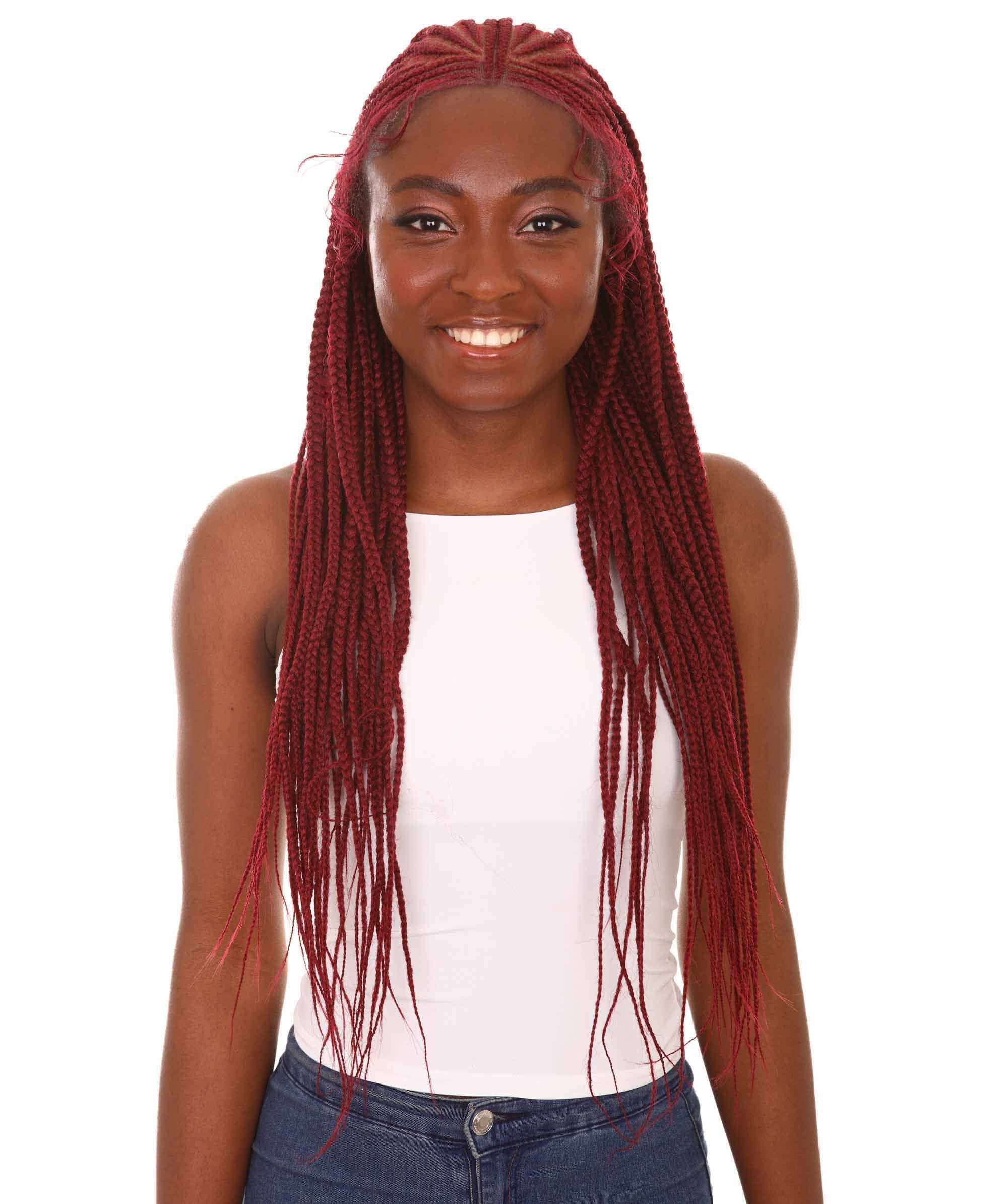 Luxluxe Viola Straight 31 Inch Long 13x5 Hand Tied Lace Braided Wig Heat Resistant Fiber Color Burgundy Walmart Com
